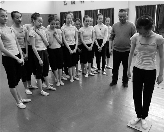 班長杜婉琳說,其實(shí)稱體重是舞蹈系的慣例,不僅開學(xué)會稱,每個月,甚至每周老師都會抽查體重。“青春期的女孩是容易胖,一般讓她們多吃魚,營養(yǎng)能保證,也不容易胖。”昨天負(fù)責(zé)上課的王老師說。