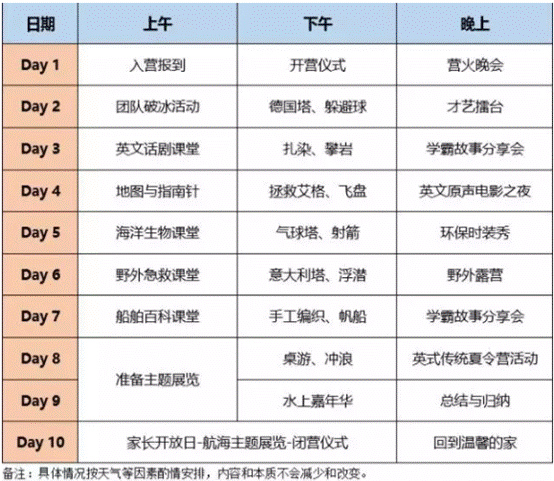 第一天·老師將帶領孩子們適應營地的環境,消除緊張與陌生感;通過小游戲,孩子們會對彼此熟悉了解,學會友好相處;學習安全守則,銘記安全常識。在夜晚的營火晚會,他們會放下想家的情緒,融入集體。