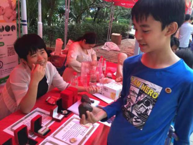 還有深圳銳思科技有限公司熱鬧非凡的“七巧板智力比拼”現場,成為親子互動樂園。簡單的三角和正方形在市民們的奇妙變換下成為不同的形狀。花、鳥、蟲、魚等動物及交通工具七巧板造型栩栩如生,看著自己的思想結晶,在益智歡樂的氛圍中,市民們眉開眼笑。