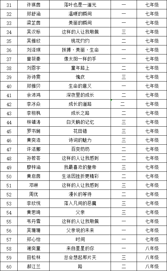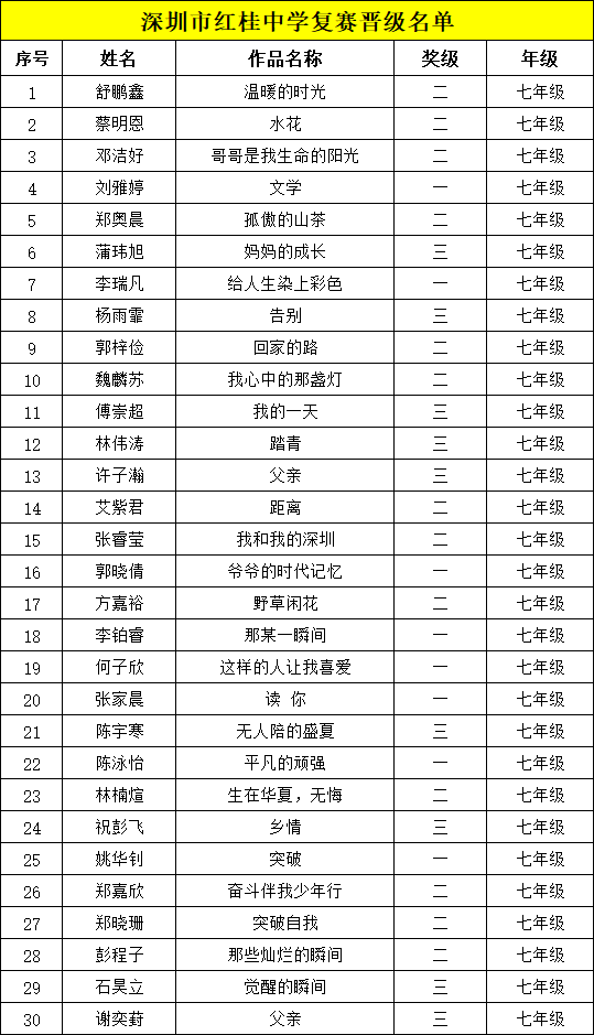 自2021年1月,活動征稿啟動以來,獲得了深圳市廣大中小學生、教師、文學愛好者的熱烈響應積極參與,吸引了深圳百余所學校的上萬人關注報名。現公布深圳市紅桂中學晉級復賽名單如下: