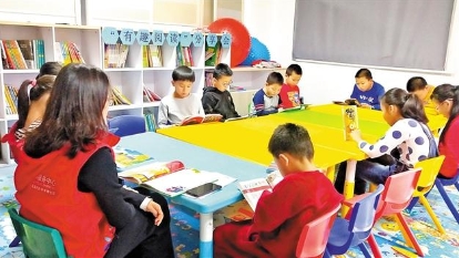 甲子塘社區組織轄區20余名小學生在“四點半學?!遍_展“閱讀分享會”活動,分享讀書心得。
