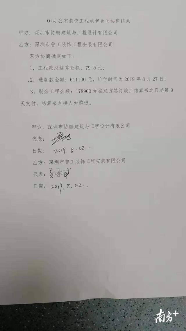 原標題:深圳一公司完工大半年近200萬裝修費余款未結,街道辦介入協調