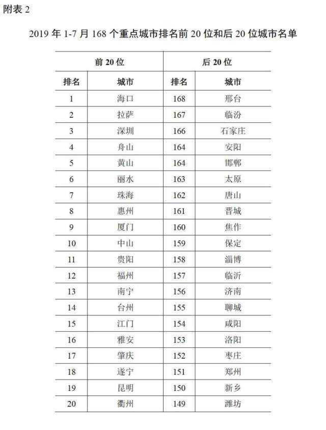 晶報2019年8月29日訊 8月27日,生態環境部發布了2019年7月和1-7月全國空氣質量狀況。數據顯示,168個重點城市1-7月空氣質量排名中,深圳位于海口、拉薩之后,排名全國第三。
