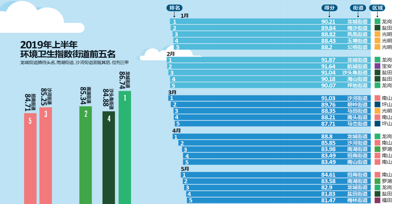 推進環境質量邁進國際一流,深圳一直在行動。細心的市民可能早已發現,深圳市城市管理和綜合執法局官方網站每個月都會發布“深圳市環境衛生指數排行榜”,為深圳的環境衛生“打分”。據了解,深圳市環境衛生指數測評排名已連續開展了兩年半,有效促進了全市環境衛生的提升和轉變。今年上半年的“成績單”顯示,全市各區(新區)各街道你追我趕,測評工作帶動社區環境改善,環境衛生的整治提升得到了市民的廣泛認可和好評。