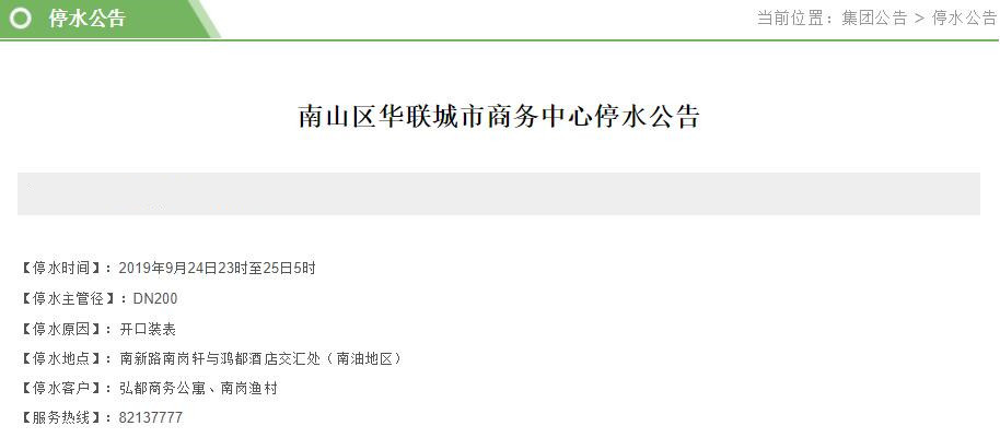 9月23-24日,福田南山羅湖多片區將停水,這些小區受影響