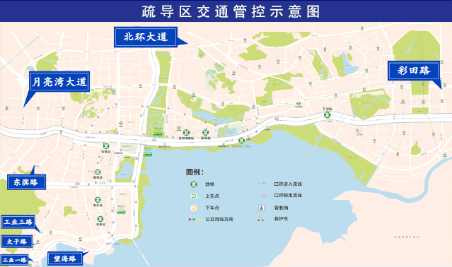 以深圳灣人才公園為中心,濱海大道(南海立交至竹子林立交段雙方向)、沙河西路(濱海大道至東濱立交雙方向)、望海路(東濱立交至中心段雙方向)、中心路(科苑南路至望海路雙方向)、科苑南路(東濱路至中心路段東側(cè))、東濱路(后海濱路至科苑南路段,不含)、后海濱路(濱海大道至東濱路,不含)的合圍區(qū)域?qū)嵤┙煌ü苤疲灰约盀I海大道東往西方向(竹子林立交至南海立交),西往東方向(南海立交至竹子林立交)實施交通管制。