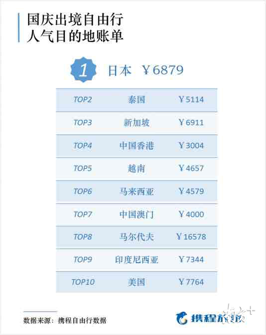 南方網2019年10月7日訊 2019年國慶假期已經結束,不少游客已經收拾好心情,投入到工作和生活當中,而在這個國慶假期,有多少國人選擇了旅游,花了多少錢?近日,攜程旅游對平臺上百萬級跟團游、自由行等度假產品大數據進行分析,并結合全國7000多家攜程旗下門店報名的情況,發布了《2019年國慶旅游賬單》。