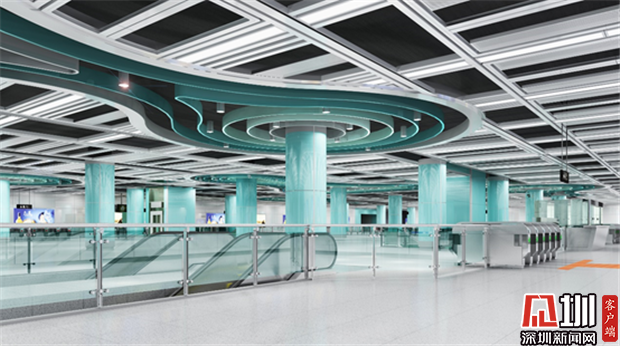 l環環相扣部位同樣采用了層疊手法,一層一步高,并加以色彩的點綴,逐級漸變,在統一中求變化,突出亮點,打造交通核心視覺點。