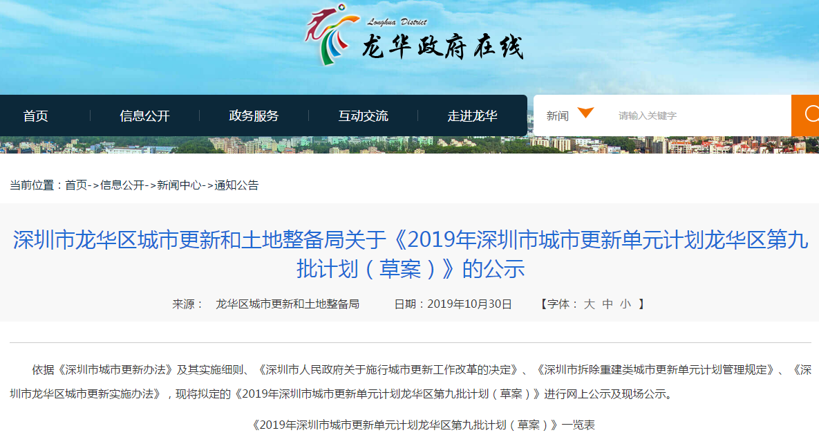 見圳客戶端·深圳新聞網2019年11月5日訊 10月30日,龍華區城市更新和土地整備局發布了《2019年深圳市城市更新單元計劃龍華區第九批計劃(草案)》的公示,更新地點分別在龍華街道、大浪街道,其中,龍華街道將建21600平方米高中用地一處,不少于9班幼兒園一所;大浪街道要落實用地面積不少于9132平方米的義務教育用地一處。