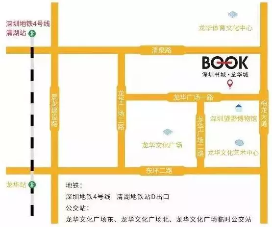 位于龍華區核心區域龍華廣場梅龍路與清泉路交界處,總建筑面積達4.6萬平方米,僅次于目前最大的中心書城,建成后將成為龍華區最大的文化主題綜合體和文化地標式建筑,并率先啟動5G技術,還有個性化定制薦書服務、屋頂農場等。