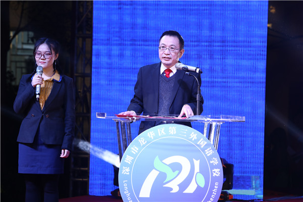 在晚會正式開始之前,聶細(xì)剛校長在致辭中提到,深圳市龍華區(qū)第三外國語學(xué)校是一所致力于植根中國、面向世界的外國語品牌學(xué)校,培養(yǎng)具有中國精神、世界情懷的國際公民。同時,在借力于孔子學(xué)院、立足打造書香校園、弘揚中華民族優(yōu)秀傳統(tǒng)文化基礎(chǔ)上,借力于北京外國語大學(xué)、北京師范大學(xué),在全力推進(jìn)英語雙師云課堂。同時,開設(shè)了俄語、法語、韓語等小語種選修課,未來還將開設(shè)日語、德語、西班牙語等小語種,凸顯外國語特色品牌。學(xué)校成為全國美育名校聯(lián)盟學(xué)校,北京師范大學(xué)項目實驗學(xué)校,北京外國語大學(xué)課題實驗基地,泰國曼松德大學(xué)孔子學(xué)院漢語教學(xué)交流基地等;吸引了一大批來自清華大學(xué)、北京大學(xué)、北京師范大學(xué)、愛丁堡大學(xué)、曼徹斯特大學(xué)、西班牙武康大學(xué)等國內(nèi)外知名高校的優(yōu)秀人才加盟。學(xué)生舞蹈團(tuán)首次登上2020年廣東省少兒春晚的舞臺。在第五屆深圳教育改革創(chuàng)新大獎評比活動中,榮獲“2019年度家校共育典范學(xué)?!?。