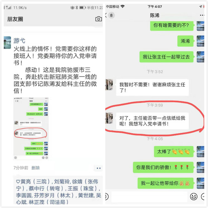 奔赴抗擊新冠肺炎一線的深圳市婦幼保健院團支書陳浠發給科主任的信息