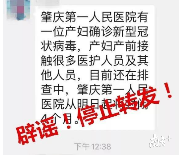 “肇慶第一人民醫(yī)院有孕婦確診,產(chǎn)前接觸很多醫(yī)護人員。現(xiàn)在要隔離183人,封閉醫(yī)院四個月。”近日,肇慶的微信群中,這條謠言瘋傳,引發(fā)市民恐慌,不敢去醫(yī)院就醫(yī)。