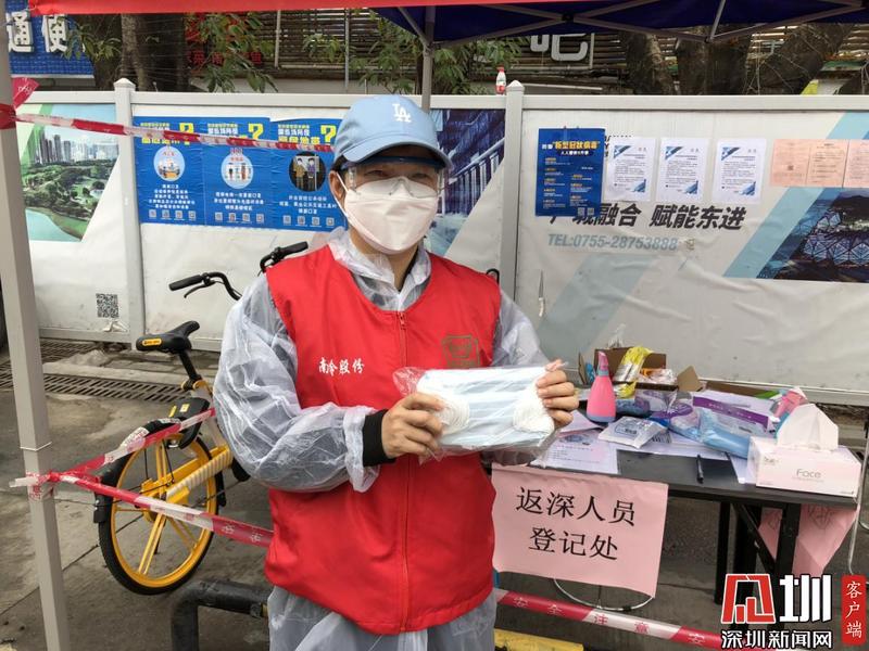 南嶺南路崗亭是南嶺村社區最大的出入口,人流、車流量大,隨著近幾日工廠企業開始陸續復工,每天出入的返深居民和車輛都絡繹不絕。羅秀蘭和李君海從2月3日開始,就“錯時”守在這個崗位上。“現在返程的人越來越多,崗亭晚上也要有志愿者。”李君海說,他白天工作沒有時間,就報名參加晚上的值守。