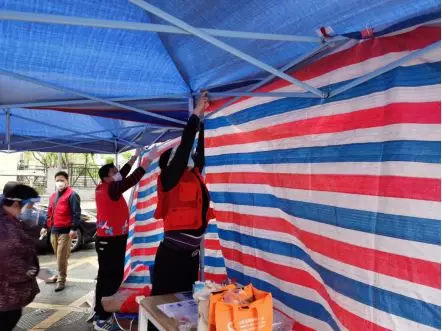 蛇口雷嶺社區迅速搭建起臨時圍擋、帳篷