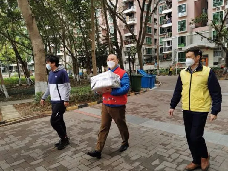 新秀社區黨員志愿者為居家醫學觀察的家庭配送食品物資(深圳晚報記者楊少昆攝)