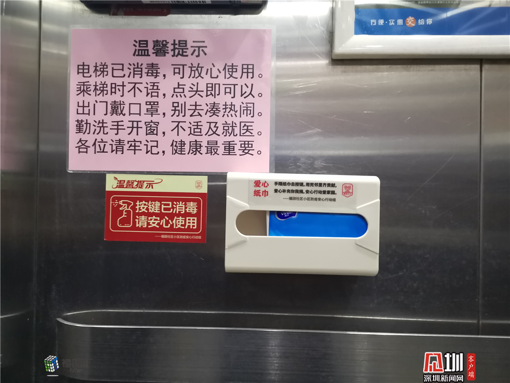 為做好小區(qū)防疫,電梯間消毒、電梯按鈕覆膜、電梯間設(shè)置公用紙巾已成為很多小區(qū)的標(biāo)配,隨之也產(chǎn)生了新的問題,比如電梯按鈕覆膜多按幾下就破了,特別是“1”和關(guān)門按鍵,小區(qū)物業(yè)剛用新的膜覆蓋上,沒一會兒的功夫就被戳破了,另外,按電梯按鍵有的小區(qū)設(shè)置了公用紙,紙巾用后亂扔等問題也影響小區(qū)衛(wèi)生。面對這樣的抱怨和難題,福田區(qū)社區(qū)小區(qū)防疫安心行動組從細(xì)微處著手,為出現(xiàn)確診病例采取硬隔離的小區(qū)統(tǒng)一購制了掛壁紙巾盒,并采購了電梯按鈕專用膜覆蓋。“這種電梯按鍵保護(hù)膜太好了,韌性強、不易破,便于消毒,你們太細(xì)心了,非常感謝!”福田區(qū)蓮花街道彩田村物業(yè)公司負(fù)責(zé)人對安心行動組贈送的電梯按鍵透明保護(hù)膜贊不絕口。
