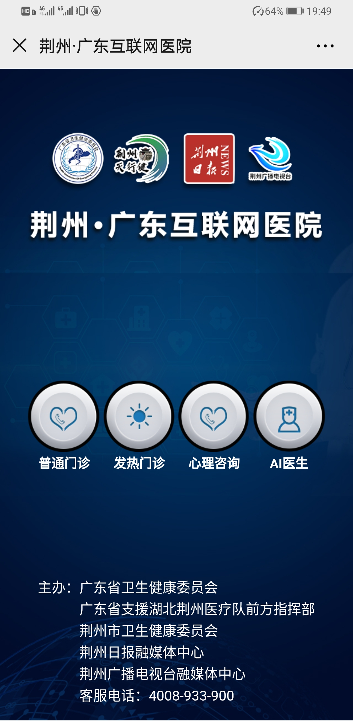 這家互聯網醫院是由廣東省衛生健康委和廣東支援湖北荊州醫療隊前方指揮部聯合,在充分研判荊州疫情防控形勢的基礎上組建的網上醫療隊,實現荊州市民足不出戶,即可享受后方優質的線上服務資源,為前方“主戰場”減負。