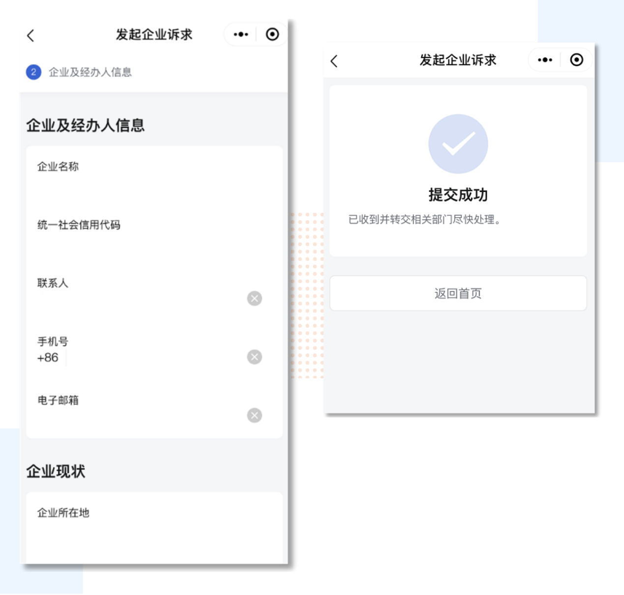 法定代表人或經法定代表人授權認可的人員均可提交企業訴求。經辦人須完成刷臉實名認證,并輸入正確的企業社會信用代碼才可進行企業訴求填報。