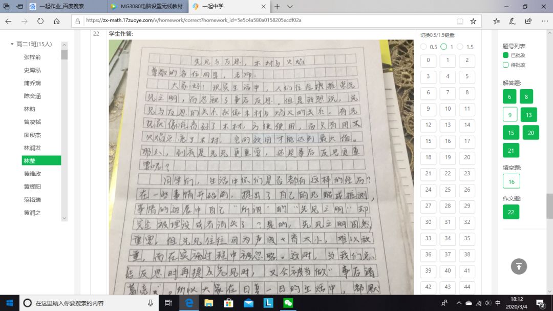 早在網(wǎng)課開始第二周,針對老師們對網(wǎng)課效率不高的顧慮,高二年級就做了一次網(wǎng)上調(diào)查,絕大部分老師贊成進行一次網(wǎng)上考試,以檢驗網(wǎng)課的學習效果,以便調(diào)整教學。之后,學校開始著手準備網(wǎng)上考試,向技術平臺提交學生和老師信息,下發(fā)《一起作業(yè)學生注冊登錄指引》和《一起作業(yè)教師作業(yè)批改操作指南》。年級各備課組開始命題,為了檢驗二實“線上學堂”的實效,學校要求命題的范圍以直播課內(nèi)容為主,兼顧寒假作業(yè)??记耙恢?,各備課組都上交平臺進行試卷制作。2月26日,網(wǎng)上作業(yè)批改功能正式上線,高二年級要求備課組在考試之前至少利用線上平臺布置批改一次網(wǎng)上作業(yè),積累經(jīng)驗,提醒平臺改進不完善的問題,及時更新,同時讓學生和老師熟悉操作技巧。備課組在考前都向學生發(fā)布了考試注意事項,要求學生豎拍照片,注意字跡大小和拍照清晰度,單題上傳,試卷在閱讀頁面和題目設置也做了優(yōu)化,大大方便了學生答題,有效減輕老師改卷負擔,提高了閱卷的效率。