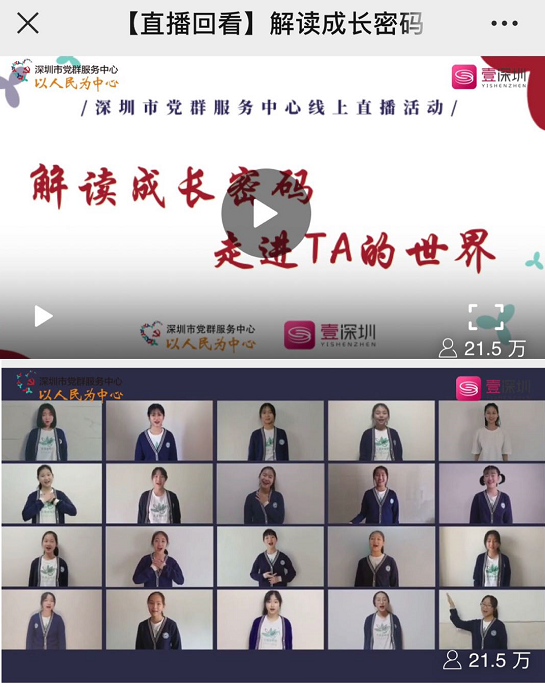 見圳客戶端、深圳新聞網 2020年3月19日訊(記者 陳彬) 3月15日下午,中共深圳市委組織部和深圳廣播電影電視集團聯合在壹深圳客戶端推出深圳市黨群服務中心線上直播活動,播出深圳市第二實驗學校花語合唱團“云合唱”作品《奉獻》,截止3月18日,線上點擊量達到21.5萬 。