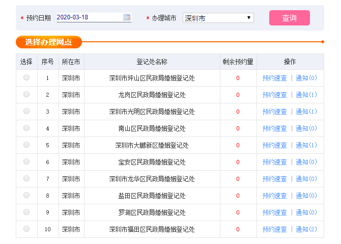 疫情防控期間,各區婚姻登記處取消現場取號,采用線上預約、提交材料及出示i深圳健康碼、運營商行程證明短信才予以辦理。