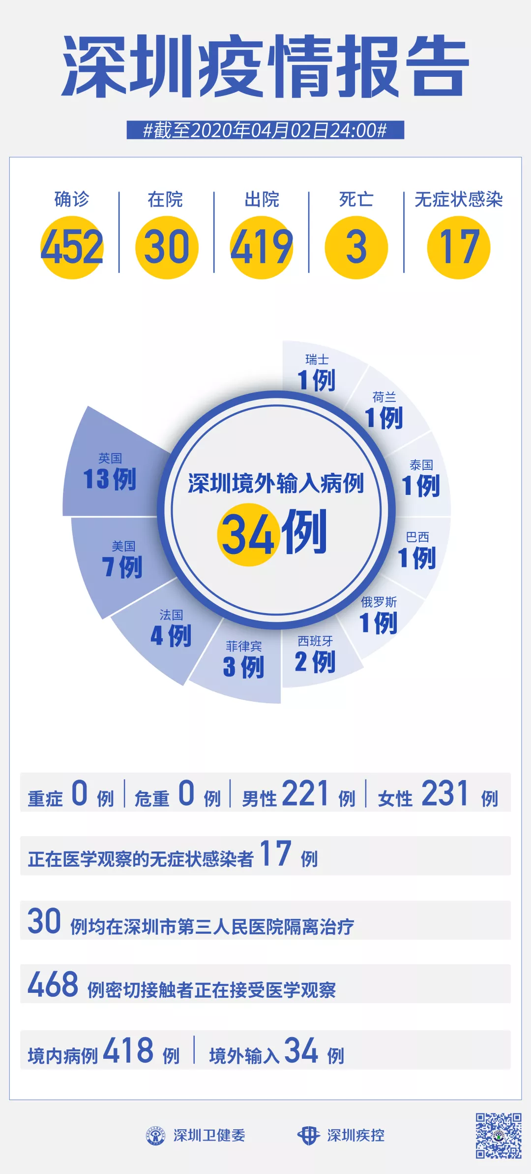【境外輸入】:當日新增1例,累計報告境外輸入病例34例。
