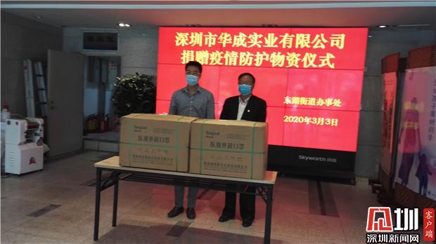 4月1日上午,馬群濤代表委托深圳市恒得源環保新材料科技有限公司呂婷經理向東湖街道捐贈防護口罩一批次10000只,助力轄區疫情防護和企業復工復產。