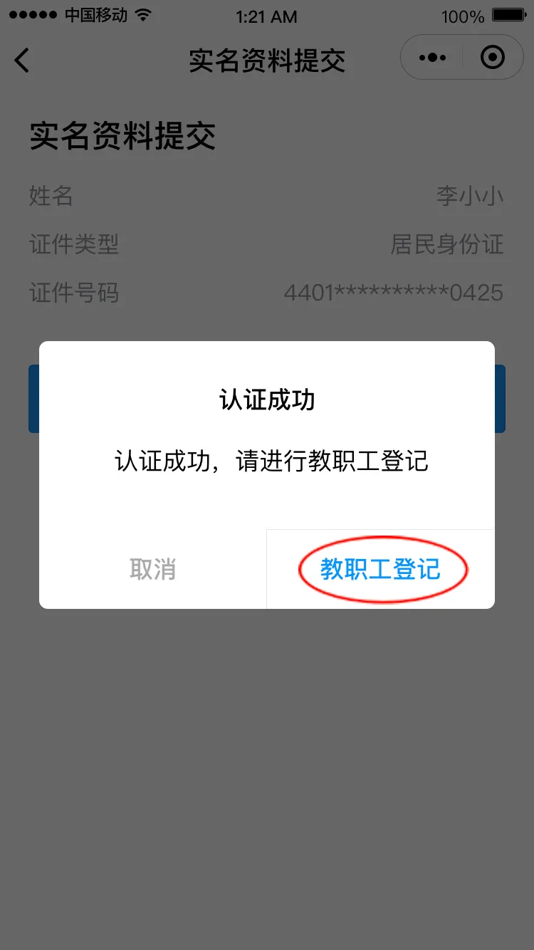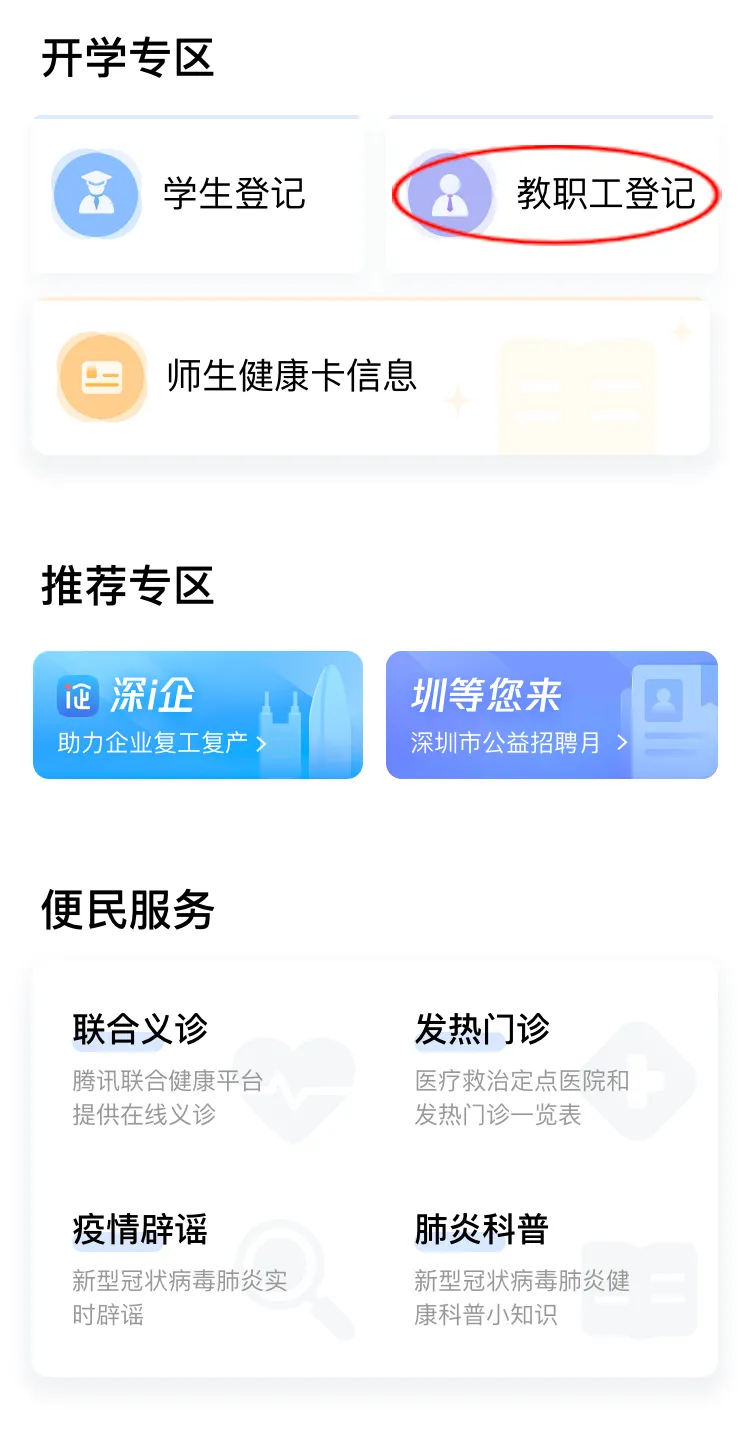 在開學專區,點擊“教職工登記”進行自主申報和實名認證。