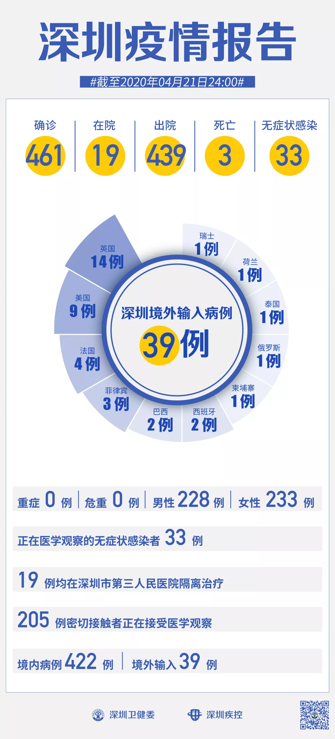 ??截至4月21日24時,深圳累計報告新冠肺炎病例461例。4月21日當天新增出院6例。