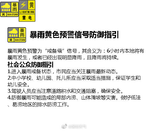 15時25分:【深圳市龍崗區(qū)分區(qū)暴雨黃色預(yù)警】預(yù)計龍崗區(qū)(南灣、坂田、平湖、橫崗、布吉、吉華街道)1小時內(nèi)將出現(xiàn)30毫米左右降水,深圳市氣象臺于2020年05月19日15時25分在龍崗區(qū)(南灣、坂田、平湖、橫崗、布吉、吉華街道)發(fā)布暴雨黃色分區(qū)預(yù)警,全市進入暴雨戒備狀態(tài),請注意防范。