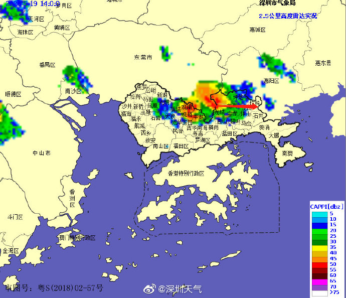 14時15分:【深圳市分區(qū)雷電預(yù)警】深圳市氣象臺于2020年05月19日14時10分在龍崗區(qū),龍華區(qū)和坪山區(qū)發(fā)布雷電預(yù)警,預(yù)計30分鐘內(nèi)上述區(qū)域?qū)⑹芾纂娪绊懀凑辗烙A(yù)案停止戶外易燃易爆危險作業(yè),并加強危化場所安全管理。