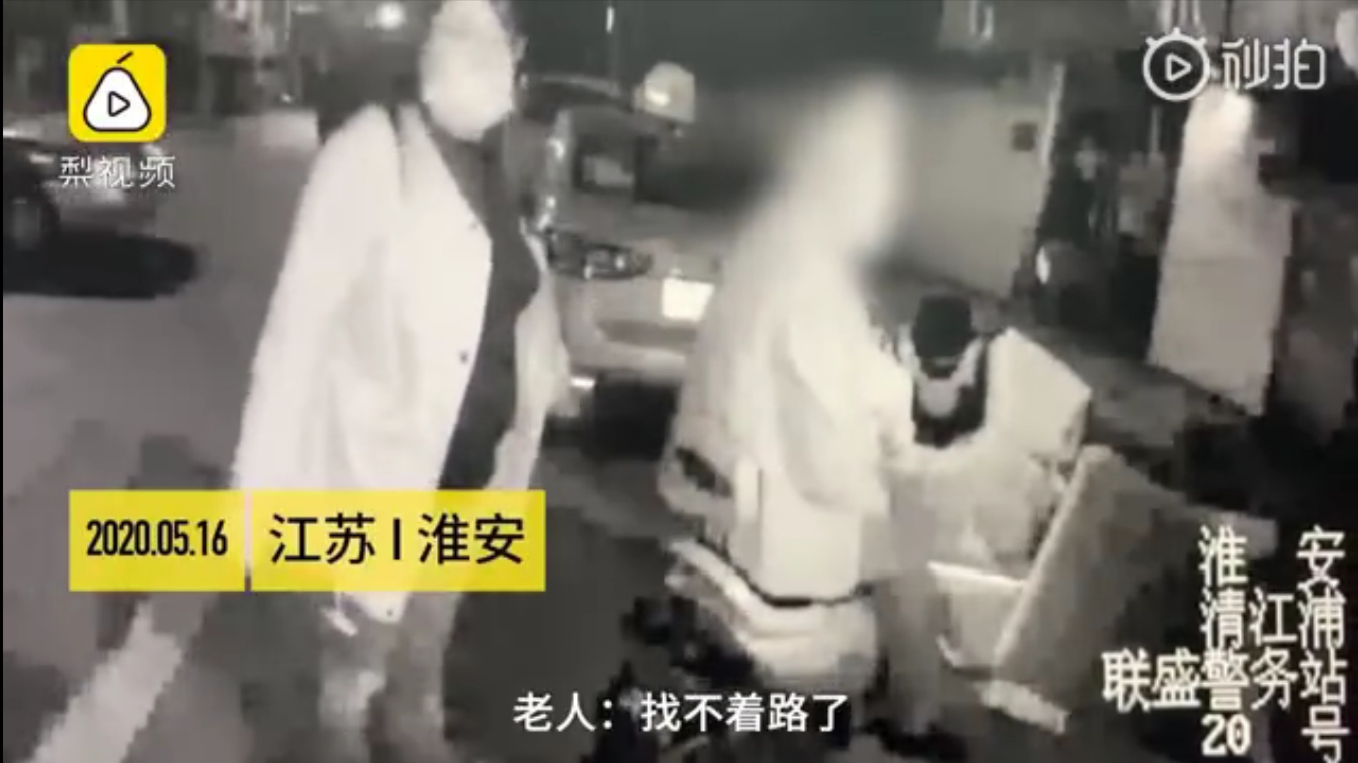 江蘇淮安市民李女士發現一位老人獨自在市區行走