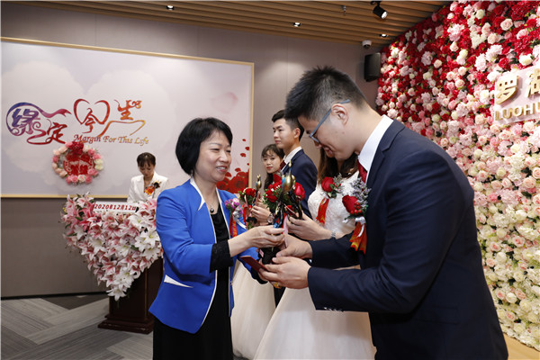 據悉,結婚登記頒證儀式是羅湖區民政局為了推崇簡約適度、文明向上的婚俗禮儀,倡導健康家庭倫理、婚姻文化、文明婚俗,培育好家風、傳承好家風,為結婚新人提供的免費服務。