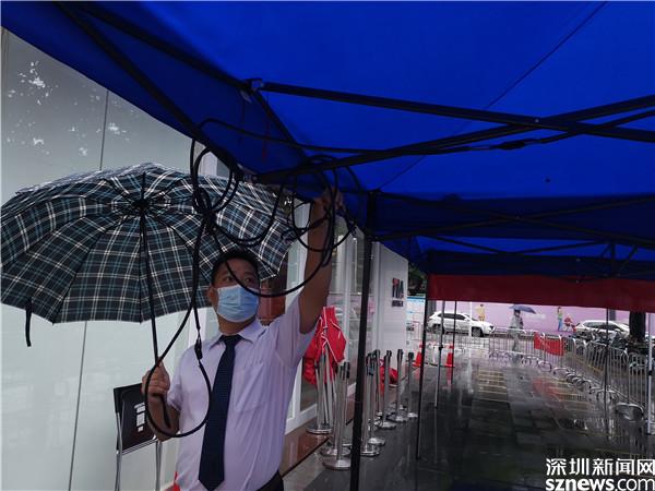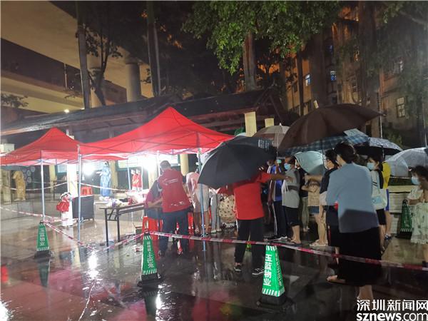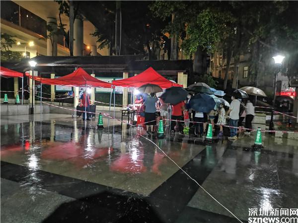 讀特客戶端·深圳新聞網20216月21日訊(記者 李慧)6月21日晚及6月22日一早,深圳雷雨交加,深圳市氣象臺2021年06月22日07時10分在多個區域發布暴雨紅色預警,羅湖也包括其中。有那么一群人,嚴陣以待、逆雨迎風,堅守在抗疫一線。記者到各核酸檢測點看到,醫護人員和社區義工們仍然冒著風雨,堅守在核酸采集的崗位上。