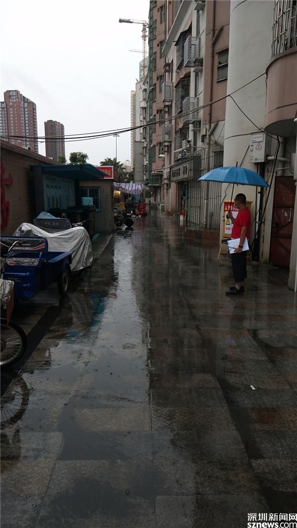 一把傘,一本臺賬,暴雨中“紅馬甲”仍然在各個小區出入口值守。