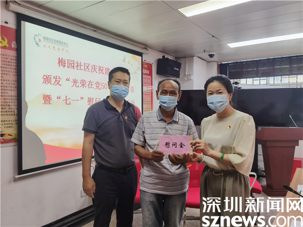 讀特客戶端·深圳新聞網2021年6月30日訊(記者 郭含笑 通訊員 陳秋珊 紀楚苗)為進一步加強和體現黨組織對黨員的關心與愛護,在中國共產黨百年華誕來臨之際,6月30日下午,深圳市羅湖區清水河街道梅園社區黨委在黨群服務中心二樓會議室舉行慶祝建黨百年頒發“光榮在黨50年”紀念章暨“七一”慰問主題黨日活動。
