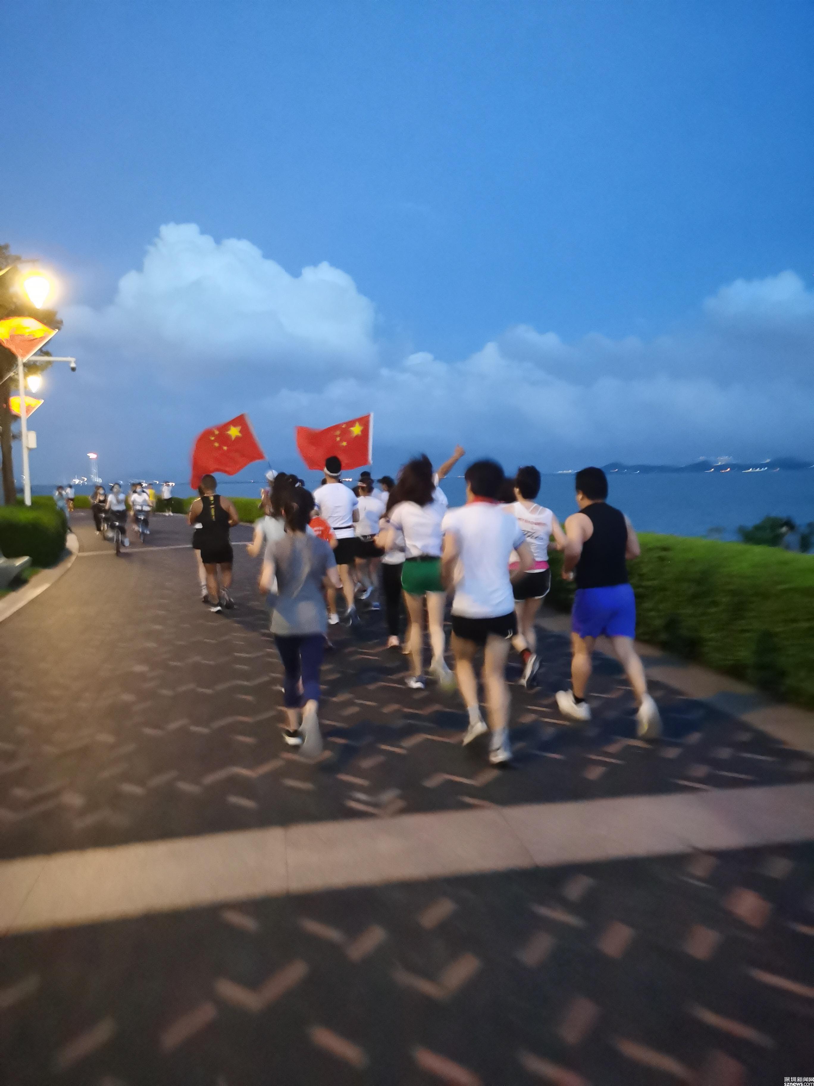 當天晚上,楊雨晨又來到深圳灣公園,與精彩人生跑團的跑友一起,打著五星紅旗,列隊奔跑。大家都是穿著團服自發(fā)而來,由衷地為自己的百年大黨驕傲。也有不少人跟楊雨晨一樣,早上跑完了,意猶未盡,晚上再跑。楊雨晨說:“看了中國共產黨成立100周年大會,心里特別振奮,特別給力,所以,早上跑完,晚上再跟大家一起慶祝。”