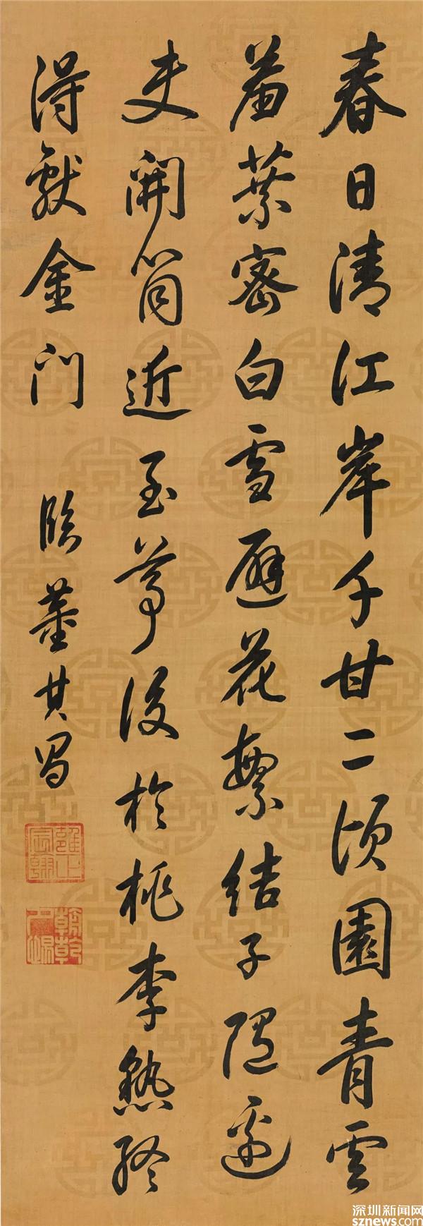 現(xiàn)場,還有嘉慶帝楷書七言詩、光緒帝楷書“恭儉惟德”、慈禧行書“頤壽”、肅親王百壽圖對屏、林則徐行書《圣主得賢臣頌》、劉墉行書節(jié)錄沈括《夢溪筆談》、丁汝昌行書詩句等作品。據(jù)主辦方介紹,《清代宮廷及名家書法展》之三十二件紫禁丹青,匯聚了甌江草堂主人易蘇昊先生二十多年收藏之精華。藏品多來自于文物公司和著名藏家,可謂來源有序。易蘇昊先生文物藝術(shù)品收藏之門類廣博,中國古代書畫、近現(xiàn)代書畫、當代書畫、前衛(wèi)性書畫、綾本書畫、瓷器、玉器、青銅器、竹木牙雕、文房四寶、鼻煙壺、雜項、西洋雕塑等,無所不包,件件精致。此次《清代宮廷及名家書法展》之三十二件紫禁丹青,乃其從收藏的數(shù)千件藏品中,遴選出的帝王御筆、詞臣墨跡之精華。自雍正至光緒,跨越近二百年,充分展現(xiàn)了清代宮廷書法的整體面貌,以供廣大藏家雅賞。