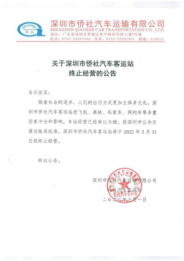 近日,記者從深圳市交通運輸局羅湖管理局獲悉,自2022年3月31日起,深圳市僑社汽車客運站終止經營,這個營業了31年的“老牌”汽車客運站,正式宣布退休。
