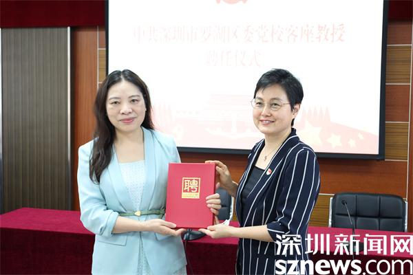 現場,劉亞峰還為中共深圳市委黨校嚴紅梅副教授頒發聘書,聘請其為羅湖區委黨校客座教授。