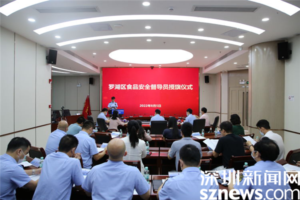 讀特客戶端·深圳新聞網2022年8月5日訊(記者 李慧 通訊員 李梁 賴錦源)為充實基層監管力量,補齊能力建設短板,羅湖區敢闖敢試、完善頂層設計,通過對“一街一車一室”外延優化,構建了一支專業化、職業化食品安全督導員隊伍。8月5日上午,羅湖區食品安全督導員授旗儀式在市場監管局羅湖局舉行。