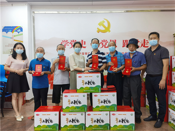 6月30日下午,深圳市羅湖區清水河街道梅園社區黨委在黨群服務中心二樓會議室舉行慶祝建黨百年頒發“光榮在黨50年”紀念章暨“七一”慰問主題黨日活動。