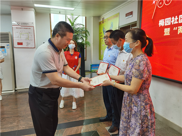 7月6日下午,深圳市羅湖區清水河街道梅園社區黨委,在黨群服務中心二樓會議室舉辦“梅園社區第一書記講黨課暨‘兩優一先’表彰大會”。