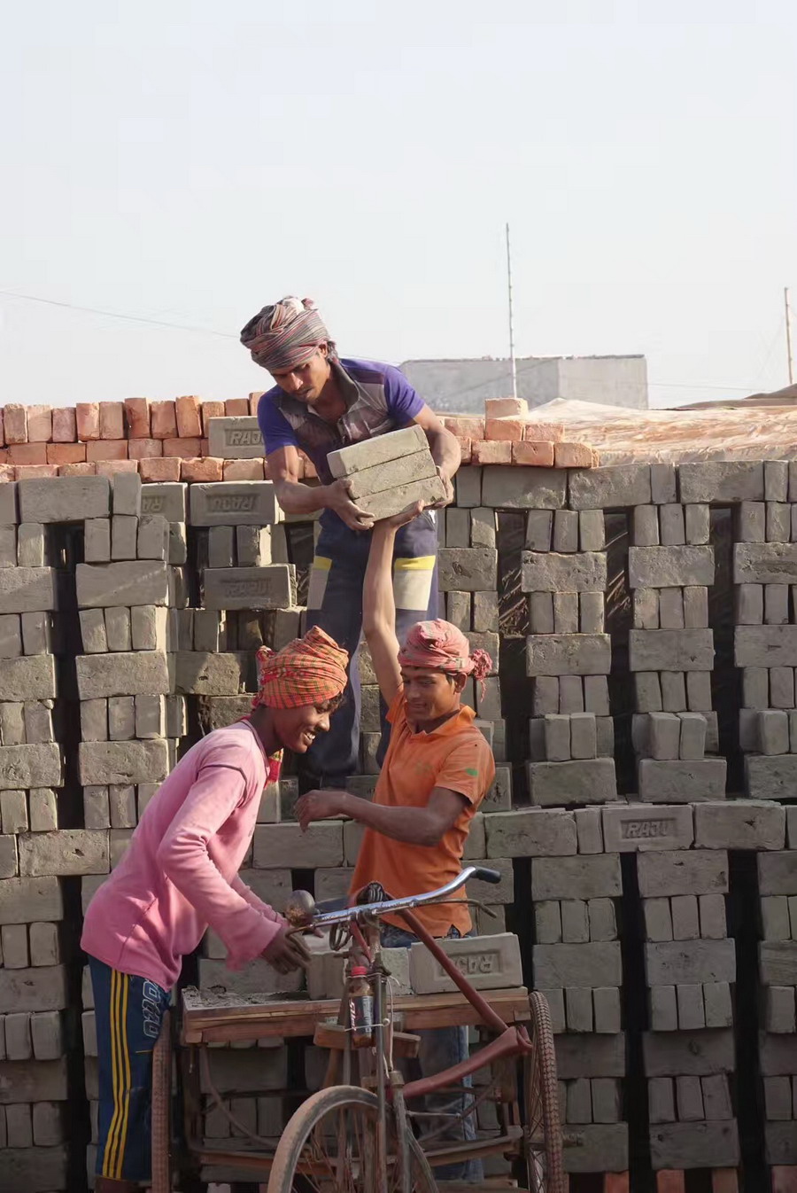 正在忙碌的磚廠工人。李仁奇 攝