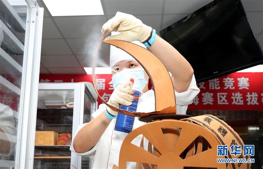8月5日,參賽選手在為藝術面包定型。當日,第二十一屆全國焙烤職業技能競賽上海賽區選拔賽,在上海市現代食品職業技能培訓中心舉行,來自上海、江蘇、浙江等地的近60名焙烤行業技師,在藝術面包、傳統糕點、糖藝和藝術巧克力等項目中進行比拼,在充滿焙烤香氣的賽場上展現技藝。新華社記者方喆攝