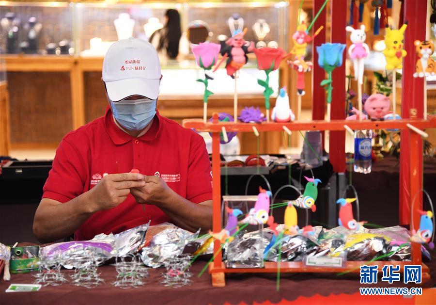 8月8日,在第十八屆中關村國際美食節(jié)美食美酒嘉年華文創(chuàng)非遺展示區(qū),工作人員制作面塑。新華社記者 任超 攝