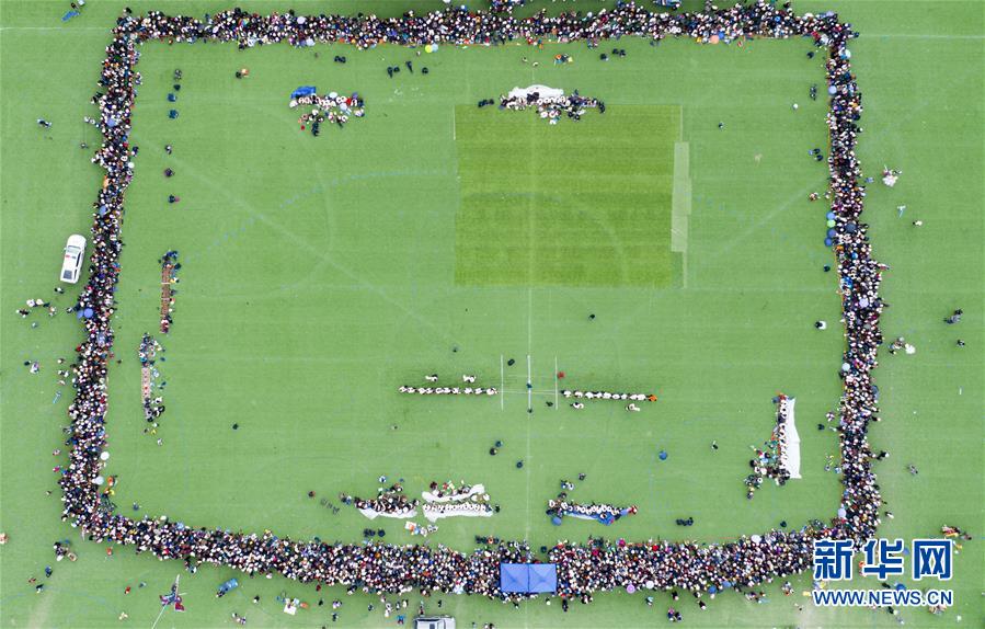 這是8月10日拍攝的拔河比賽現場(無人機照片)。新華社記者普布扎西攝。