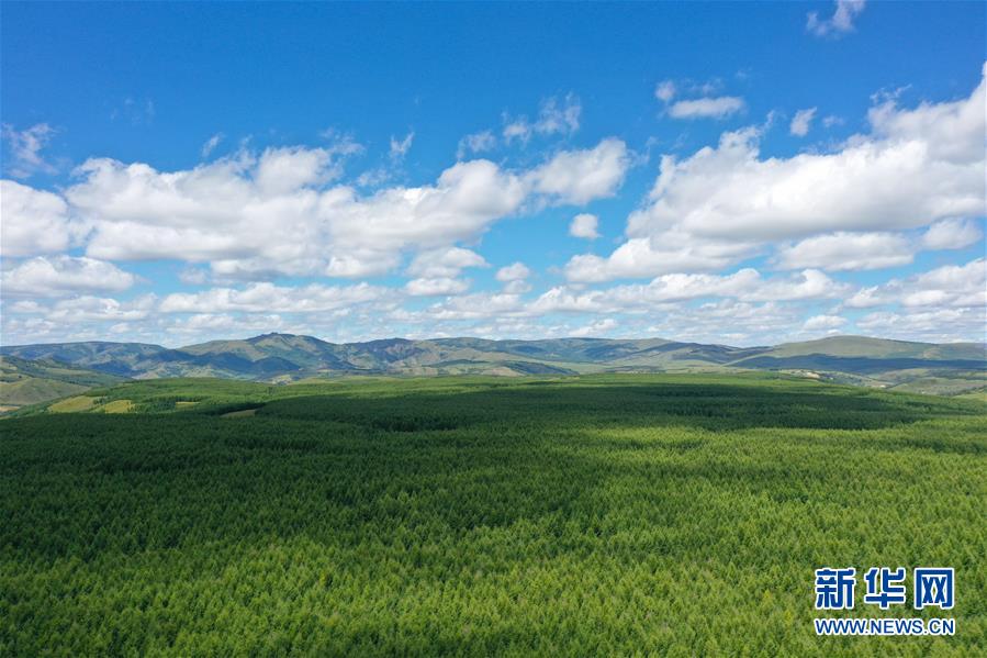 這是8月13日拍攝的位于克什克騰旗的樺木溝國家森林公園風景(無人機照片)。克什克騰旗位于內蒙古自治區赤峰市西北部,境內的湖泊、河流、草原、森林等自然景觀,讓人們流連忘返。新華社記者徐欽攝