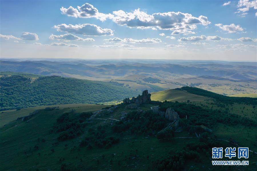 這是8月11日拍攝的克什克騰石陣景區風景(無人機照片)。克什克騰旗位于內蒙古自治區赤峰市西北部,境內的湖泊、河流、草原、森林等自然景觀,讓人們流連忘返。新華社記者徐欽攝